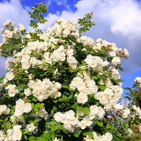 Trandafir cutie, soi alb urcator